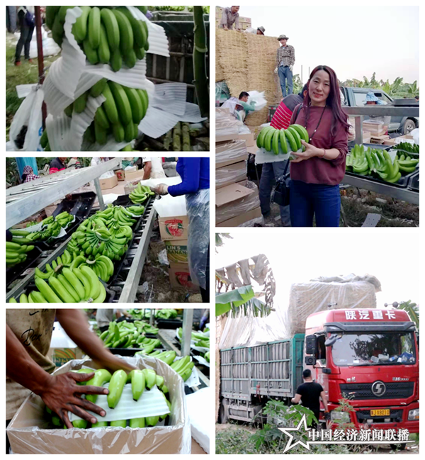 采訪結(jié)束時,記者看到香蕉園區(qū)正有一輛收果的貨車正在采裝香蕉,只見顆顆果形漂亮且飽滿圓潤的香蕉通過清洗、分揀、覆膜、裝箱,然后搬上大貨車,運到全國各地。