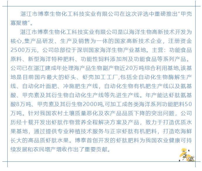 熱烈祝賀博泰公司「殼寡糖」榮獲“中國十大生物刺激劑原料品牌”年度評選前三名