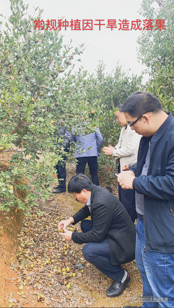 當(dāng)記者一行來到湖南常寧的一片油茶樹園區(qū),不禁眼前一亮,整個(gè)園區(qū)郁郁蔥蔥,每棵樹上都結(jié)滿了油茶果,無落果現(xiàn)象,果子油亮光滑,色澤橘紅帶黃,在厚綠的葉子間爭先恐后探出頭來,很是喜人。完全沒有受干旱天氣影響造成的像其他果園蕭條、落果的現(xiàn)象。這是怎么回事呢?
