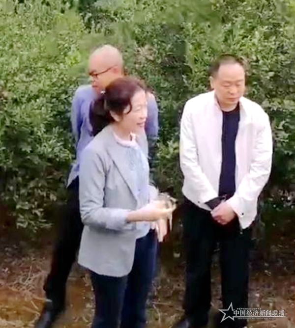(現(xiàn)場,果園園主劉明湖(左二)為大家介紹油茶樹生長情況)