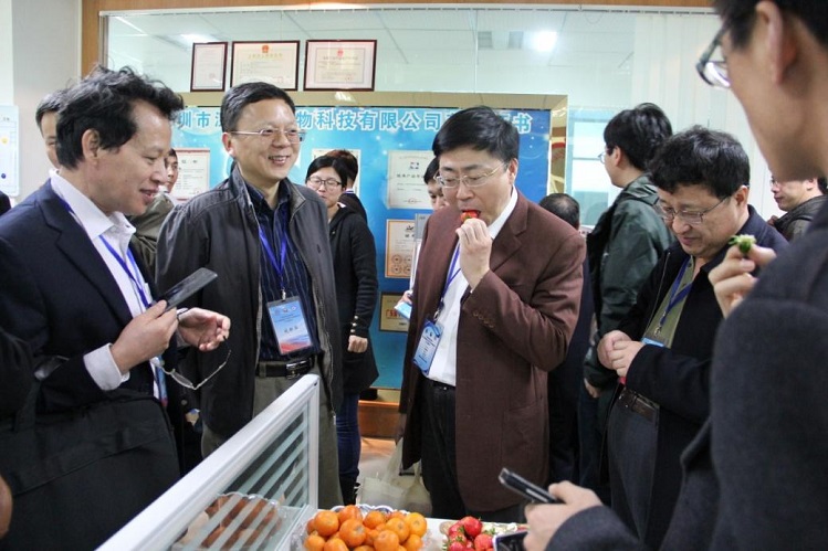 中國科學(xué)院院部咨詢項(xiàng)目組成員近十位院士及三十多位研究員就“海洋生物質(zhì)資源開發(fā)與利用中存在的問題和對(duì)策”到國家生物產(chǎn)業(yè)基地大鵬海洋生物產(chǎn)業(yè)園調(diào)研,并蒞臨到深博泰公司進(jìn)行調(diào)研和指導(dǎo),現(xiàn)場(chǎng)各位院士專家品嘗了由深博泰自主研發(fā)的蝦肽肥種植出來的有機(jī)草莓和砂糖橘都贊不絕口,特別是對(duì)我公司綜合利用蝦加工下腳料開發(fā)系列高新技術(shù)產(chǎn)品,實(shí)現(xiàn)“0”污染排放的組合技術(shù)體系及建立年處理5萬噸蝦加工下腳料的清潔生產(chǎn)示范工程給予高度評(píng)價(jià)。
