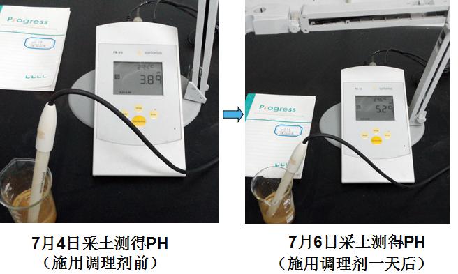 1、 蝦肽肥料能迅速滲透土壤并中和土壤酸度,試用兩天后土壤PH值由原來3.89上升到5.24。