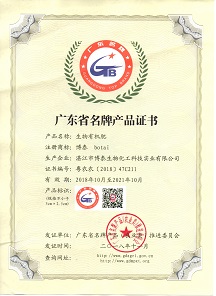 生物有機肥--廣東省名牌產(chǎn)品證書