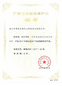 國家重點新產(chǎn)品證書(蝦肽氨基酸葉面肥)